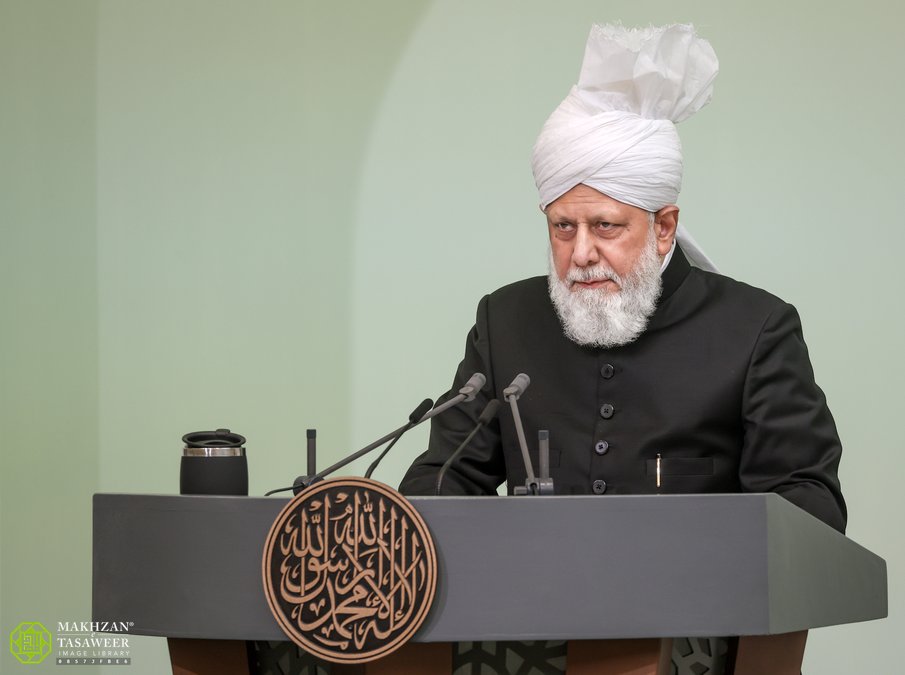 His Holiness next reflected upon the virtue of patience, noting that though difficult, “patience in the face of adversity leads to Allah’s favour and rewards.” He stressed that patience is especially important within the home, as a lack of it can cause minor issues to escalate into serious arguments and division.